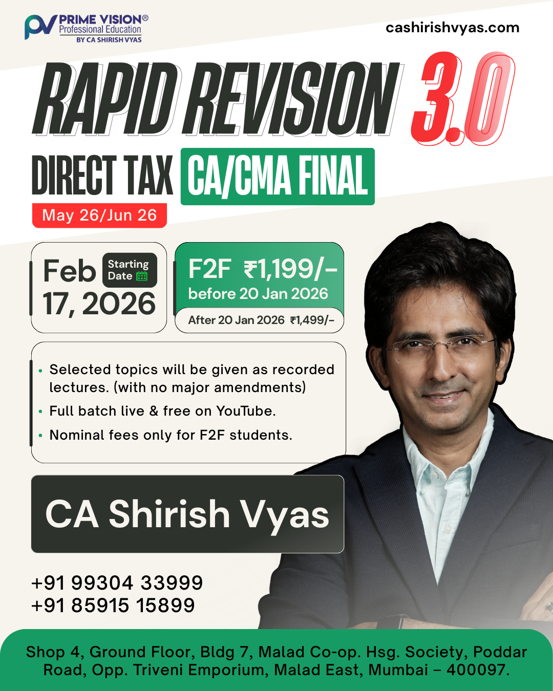 CA/CMA Final Direct Tax Rapid Revision 3.0 May 26/Jun 26 by CA Shirish Vyas